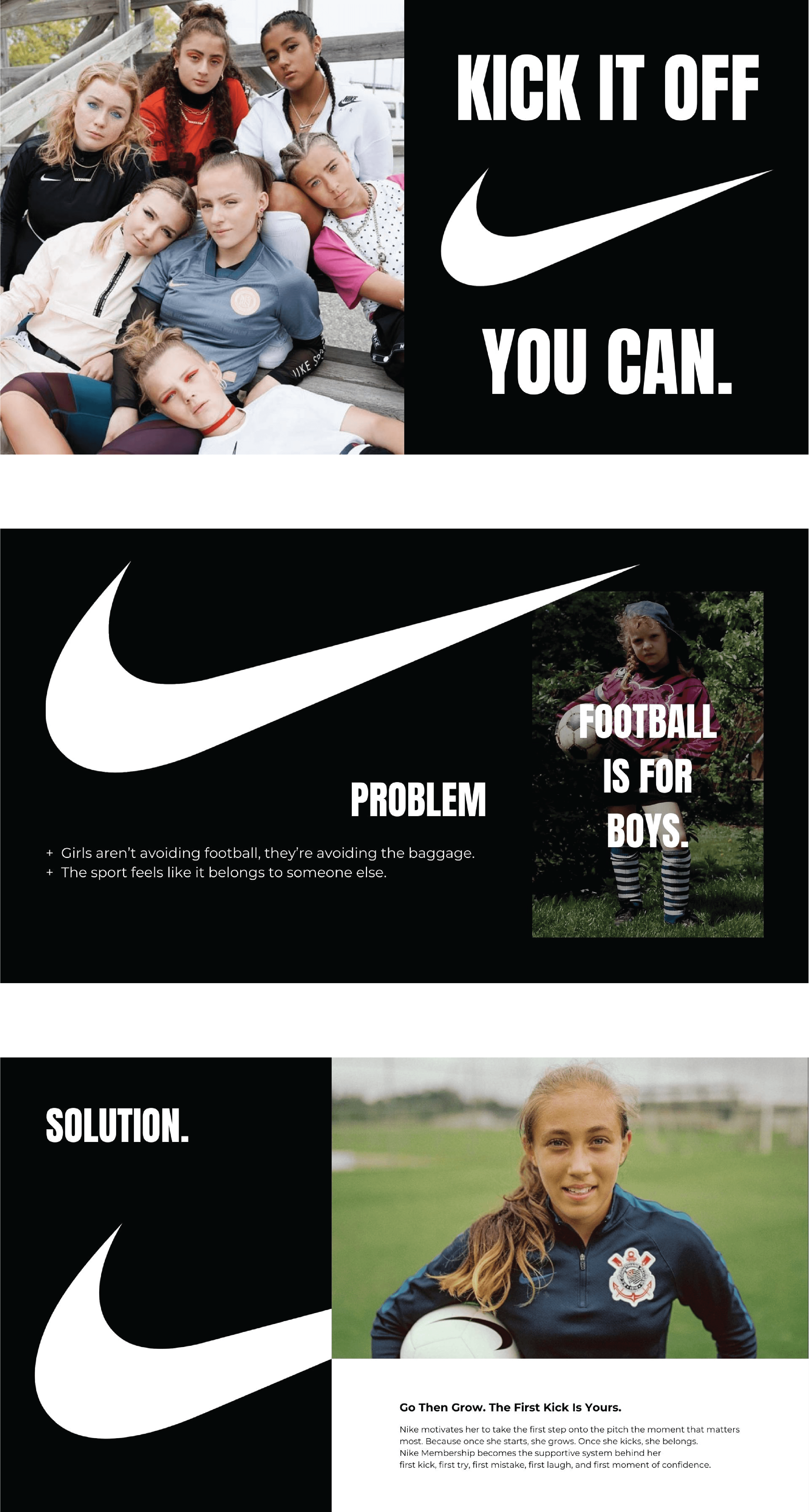 High-contrast, minimalist slides using Nike’s core black-and-white palette.